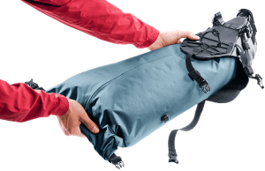 Rucksäcke, unter Rennradfahrern meist verhasst, unter Mountainbikern als normal angesehen. Ob ein Rucksack infrage kommt, muss jede:r für sich selbst entscheiden. Kleine Trinkrucksäcke mit Trinkblase schmiegen sich oft gut an den Körper an und stören nur wenig. Größere Rucksäcke empfinden viele als störend, doch gibt es hier je nach Modell Welten Unterschied im Tragekomfort. Ein kleines, praktisches Modell, in das auch eine Trinkblase passt, ist der deuter Race 8.